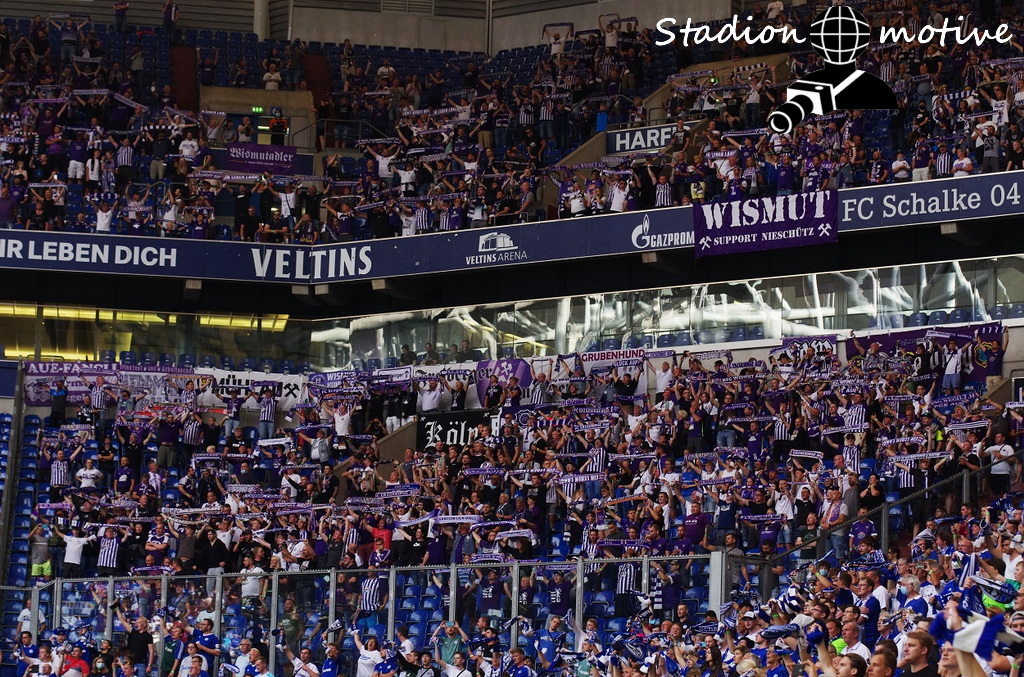Nach dem Abstieg von Schalke 04, haben sich sicherlich nicht wenige Auer, diesen Termin rot im Kalender angestrichen. Auch bei mir war ein rotes Kreuz im Kalender, als dann der genaue Termin kam, setzte erstmal Ernüchterung ein. Freitagabend ist jetzt nicht die beste Anstoßzeit. Urlaub wurde eingereicht und mit der Planung begonnen. Am Ende boten sich leider keine Spiele ringsrum an, somit ging es nur hin und nach dem Spiel zurück. Danke an meine Fahrer Rene und Hanne. Zum Sportlichen ist gesagt, das die Veilchen ordentlich dagegen hielten und einen verdienten Punkt aus Gelsenkirchen mitnahmen. Nach den 90 Minuten lehn ich mich mal weit aus dem Fenster und sage, Schalke wird ein zweiter HSV. Nach dem Spiel tauschte man sich noch etwas an der Plexiglasscheibe aus. Man munkelt, das dies auch Unentschieden endete.