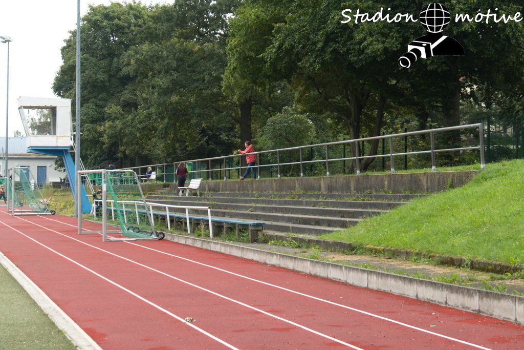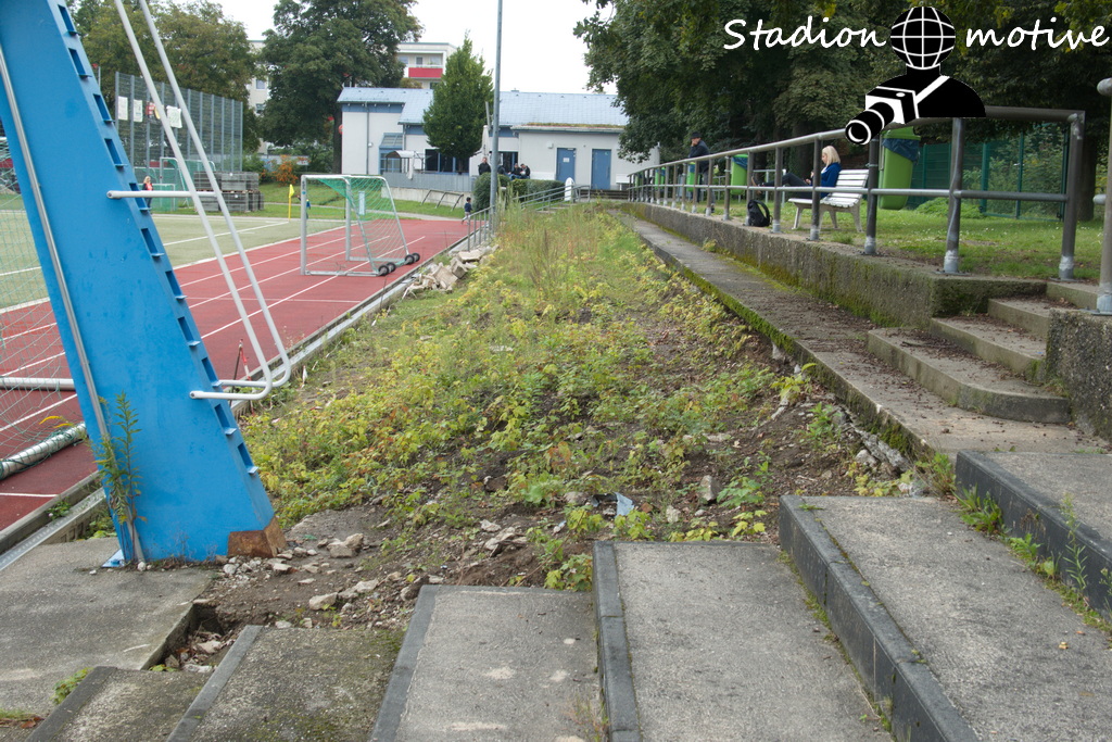 Zum Glück stand da auch gleich eins bereit und ich stand zwei Minuten vor Anpfiff auf dem Platz. Leider wurden hier Teile der Stehtraversen weg gerissen und es scheint als würde der Rest auch bald entfernt werden.