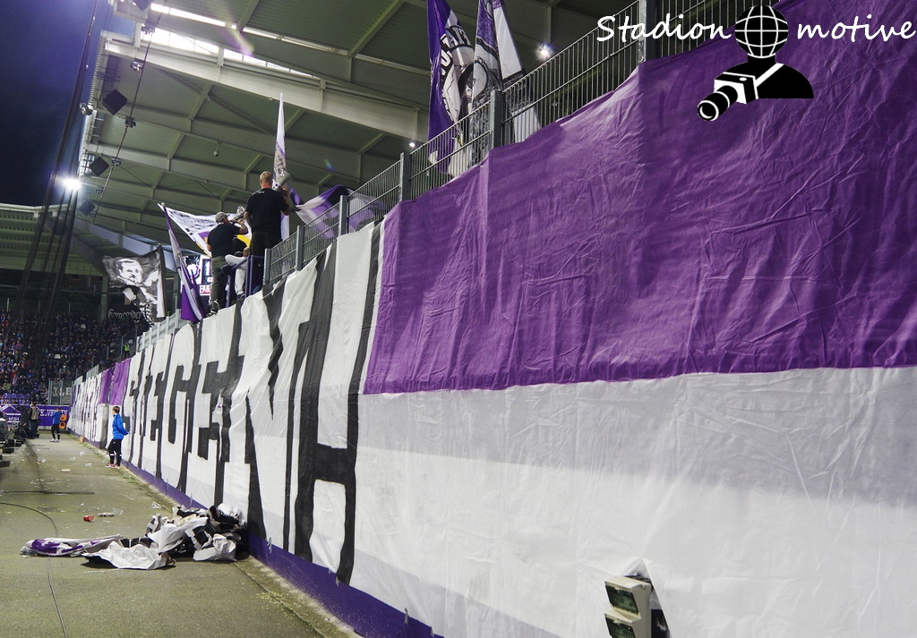 Was für ein unfassbares Spiel. Schaut es euch einfach in der Zusammenfassung an (https://www.youtube.com/watch?v=g7xbfhhKYOA). Hier nun die weiteren Fakten. Die Veilchen konnten zum erstenmal in der Corona Pandemie und unter dem gegebenen Hygienekonzept ein ausverkauftes Stadion vermelden. Vor der Partie wurde Holger Erler vom Sächsischen Fußballverband ausgezeichnet und Fabian Kalig beendete seine Karriere in Aue und wurde dafür ebenfalls geehrt, inklusive eines Spruchbandes von der Kurve. In der ersten Hälfte gab es ein Spruchband für einen verstorbenen Bergmann. Glück Auf !!! Zur zweiten Hälfte wurde über die gesamte Westtribüne Blinker gezündet, hinter zwei großen Spruchbändern (KÄMPFEN! – SIEGEN!), welche auch über die gesamte Spielzeit hingen. Am Gästeblock gab es kleine Meinungsverschiedenheiten und auch ein Flitzer schaffte es doch tatsächlich, nach Abpfiff, auf dem Platz und verabschiedete die Rothosen mit zwei Stinkefingern. Die rote Laterne konnte an Ingolstadt weitergereicht werden.